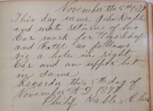 John Kable Liberty Township earmark, 1877