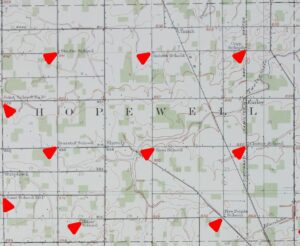 In Hopewell Township are the following schools, spelled as they are on the map: Stedke School, Siebert School, Copp School, Clutter School, Ham School, Pearstof School, Joint School No. 10, Joint School No. 1, Miller School, Five Points School.