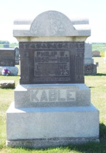 Philip Kable and Caroline Koch married in 1872 and by 1880 they had four children and lived next door to Philip’s parents. The Philip Kable family in 1880: Philip, 30; Caroline, 30; Catherine, 6; Philip [Jr], 5; William, 3; and Louisa, 1. Philip Kable Sr. was a farmer. [10]